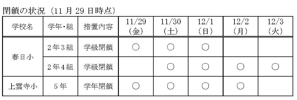 ⇒ 29日(金)~12月2日(月)まで学年閉鎖