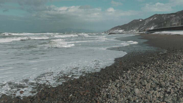 撮影:2021年2月19日 荒れる冬の海辺を近くで見る機会はほとんどありません。 波にもまれた石が転がる音が響くなか、シロチドリの群れやわずかに波の花が見られます…