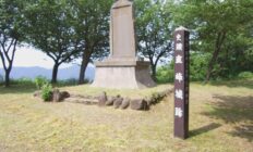 上越市「春日新田の馬市跡」の標柱前を自転車でスタート。