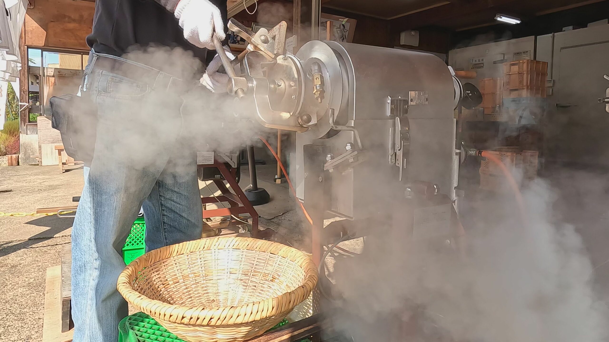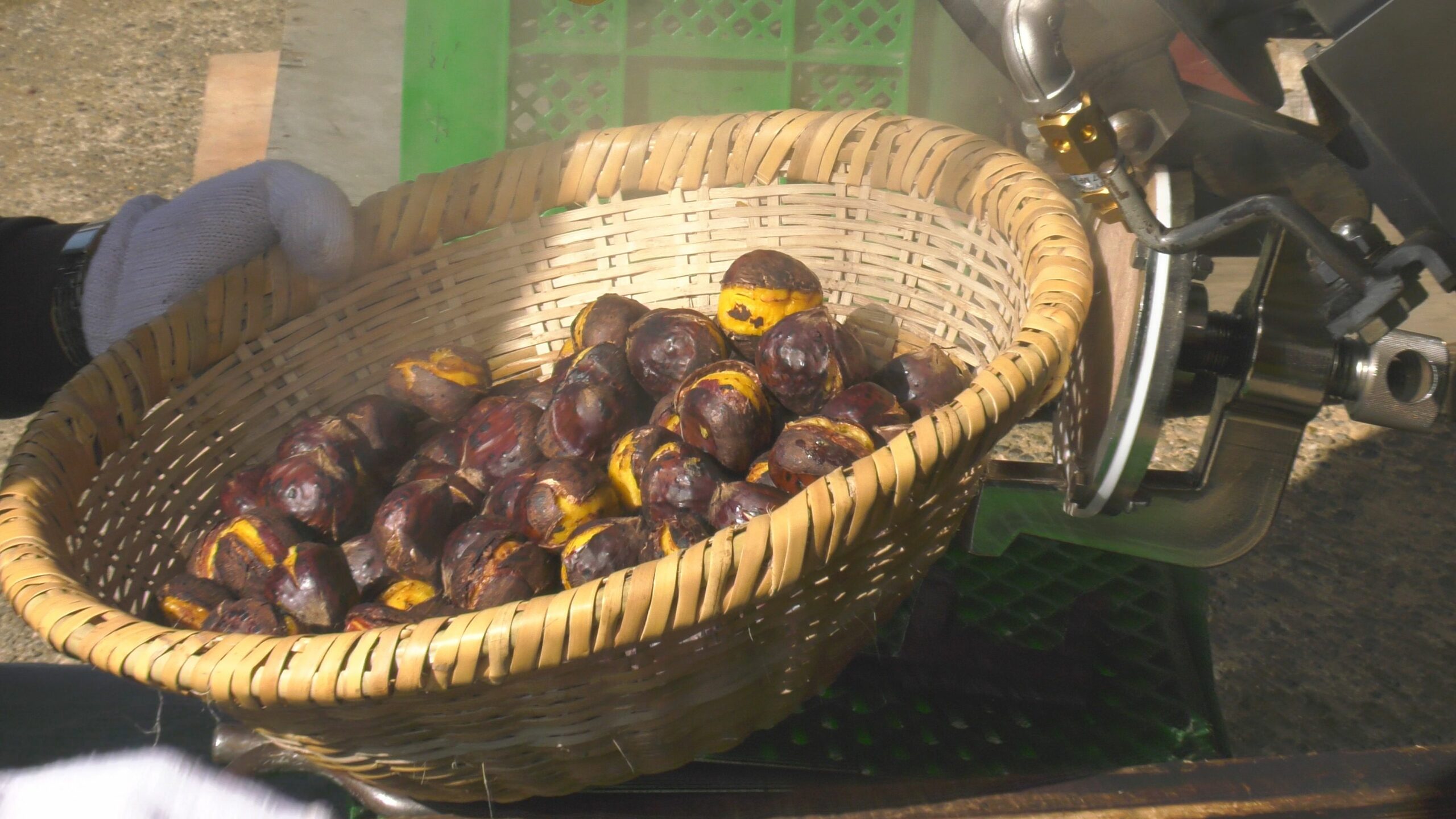 蒸気が抜ける音が響きわたり焼栗の完成です。