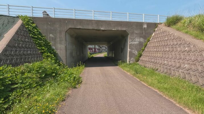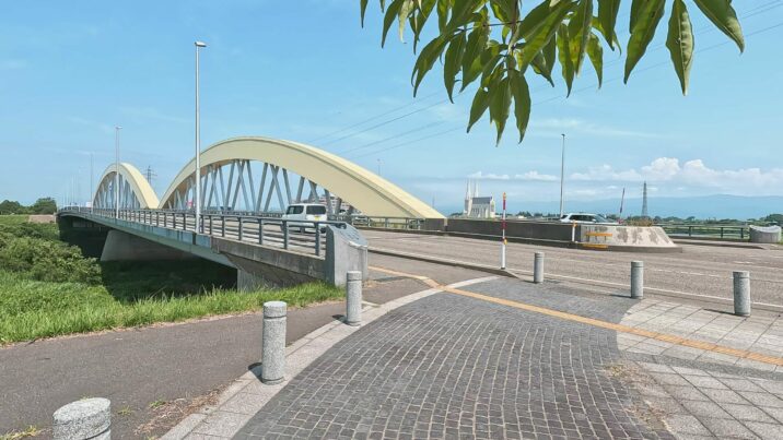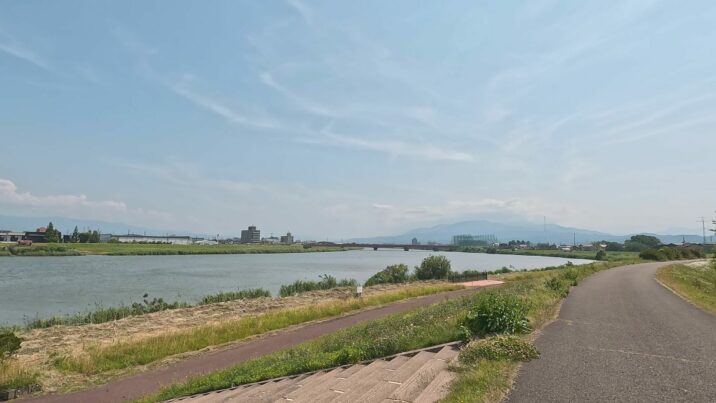 関川の堤防は、風が強くなければ、坂や車の少ない自転車にとって快適な道です。