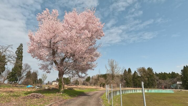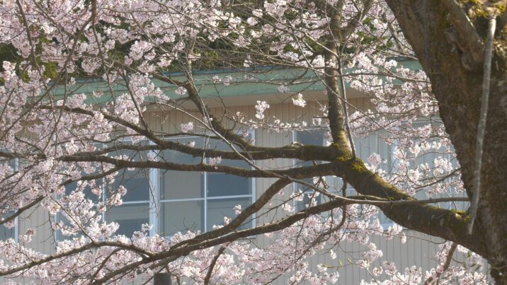 子どもたちがいなくなっても咲き続けるサクラをご覧ください。