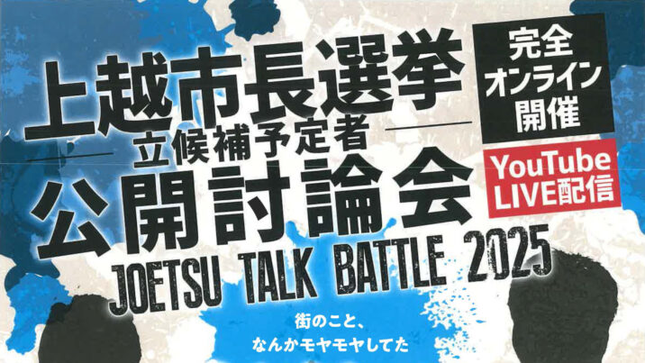 10月26日(日)に投開票が行われる上越市長選挙の立候補予定者による公開討論会があす10月16日(木)に、上越市市民プラザで開催されます。主催の上越青年会議所のYouTubeチャン…