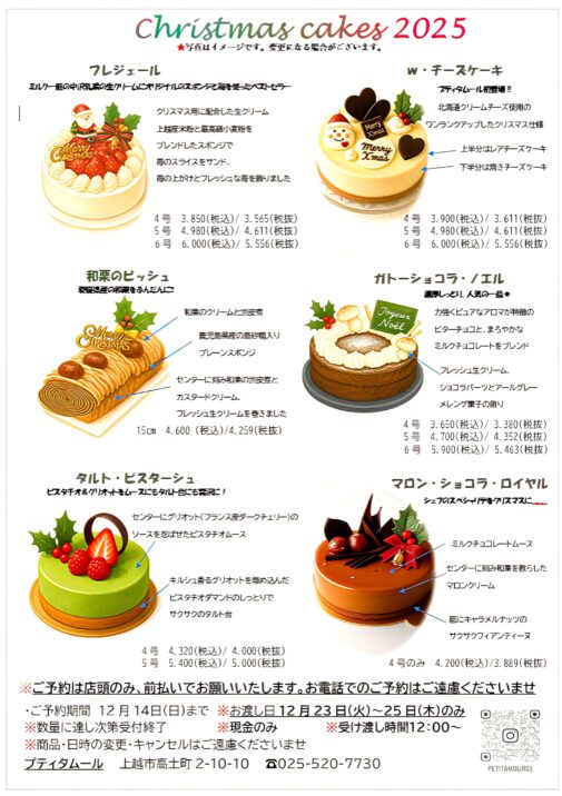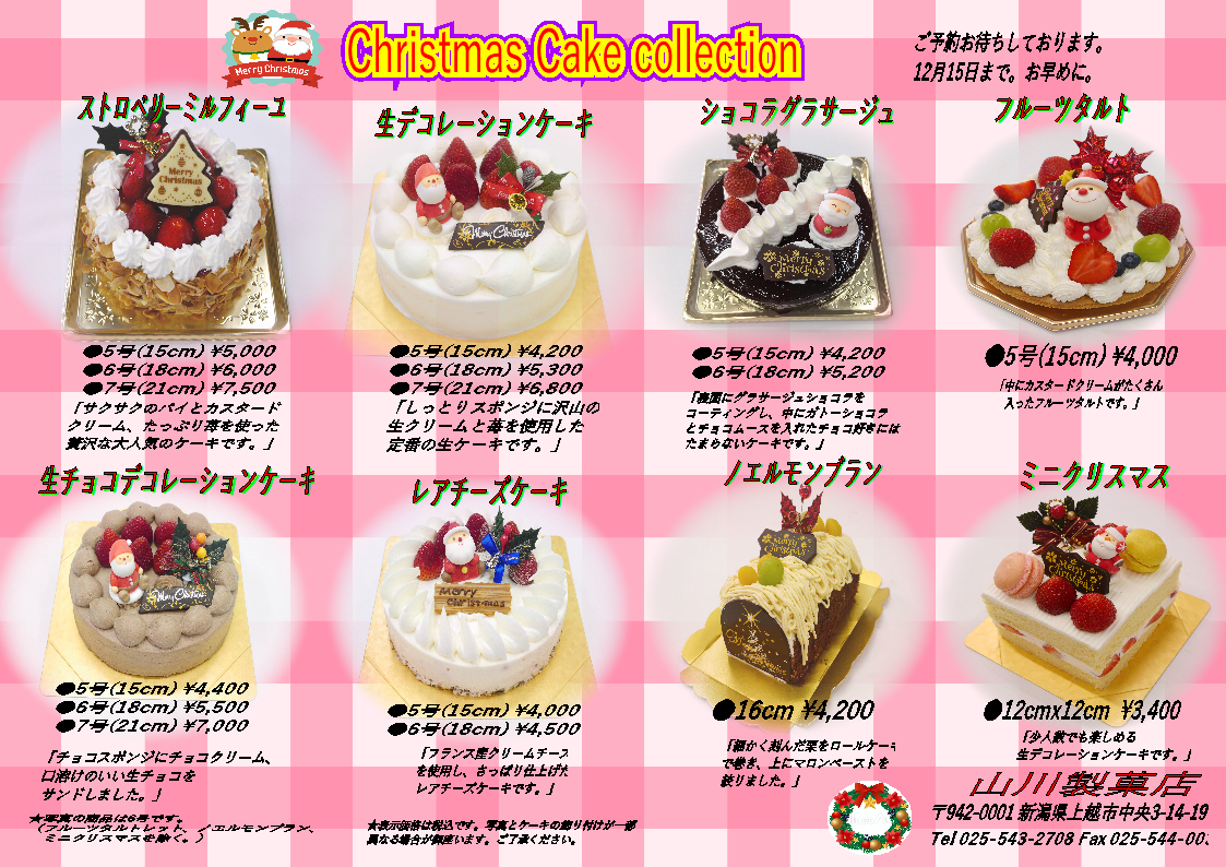 今年もクリスマスに向けて、上越市と妙高市のケーキの情報を集めてみました。クリスマスケーキ選びの参考にどうぞ。掲載したお店以外の情報も随時アップしていきます。お楽しみに。