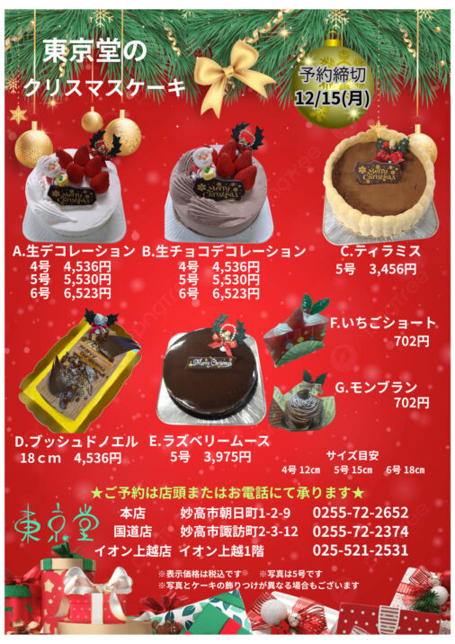 上越市直江津にある老舗の和菓子店です。洋菓子も手掛けていて、今年もいろいろな種類のクリスマスケーキを用意しています。