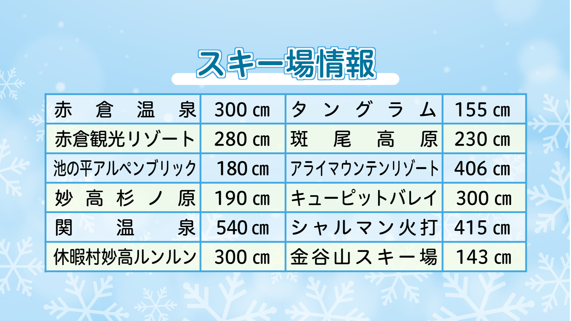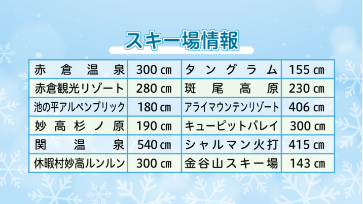 上越妙高エリアの各スキー場の積雪は下記の通り(1月27日 午前 現在)