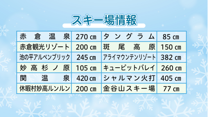 上越妙高エリアの各スキー場の積雪は下記の通り(3月5日 午前 現在)