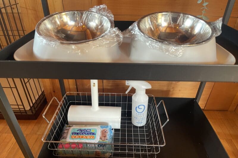フードボウルやゲージ、リード掛けなどのグッズが用意されています。 料金の詳細はキューピットバレイのホームページをご覧ください。