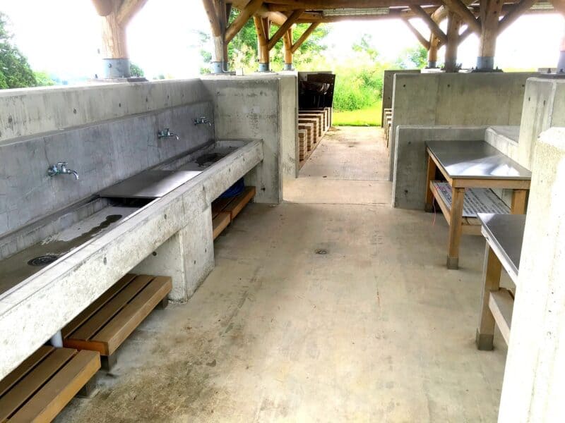 炊事場は給湯器が完備されていて、お湯も出るので食器洗いが快適です。またキャンプサイトには水洗トイレが完備されています。男女別で清潔に管理されています。