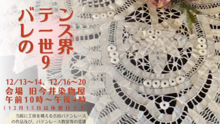 高田の風土産業「バテンレース」の作品の展示や制作体験が楽しめる作品展「バテンレースの世界9」が上越市大町5丁目の旧今井染物屋で、12月13日(土)から開催されます。 バテンレースは…