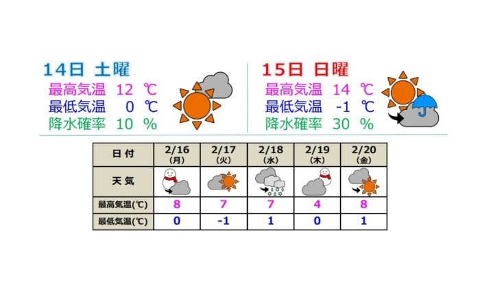 来週の上越地方は、冬型の戻る日もありそうですが一時的で、大雪の心配はなさそうです。 左図は14日(土)朝9時の予想天気図 ・北陸地方は太平洋から張り出す移動性高気圧に南の方から覆わ…