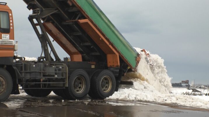 13日(火)の上越地方は、寒冷前線が北陸地方を通過した影響で昼ごろから雨が降りましたが、14日(水)は再び雪が降る見込みです。雪に備えて、上越市内の2か所に雪捨て場が開設されました…