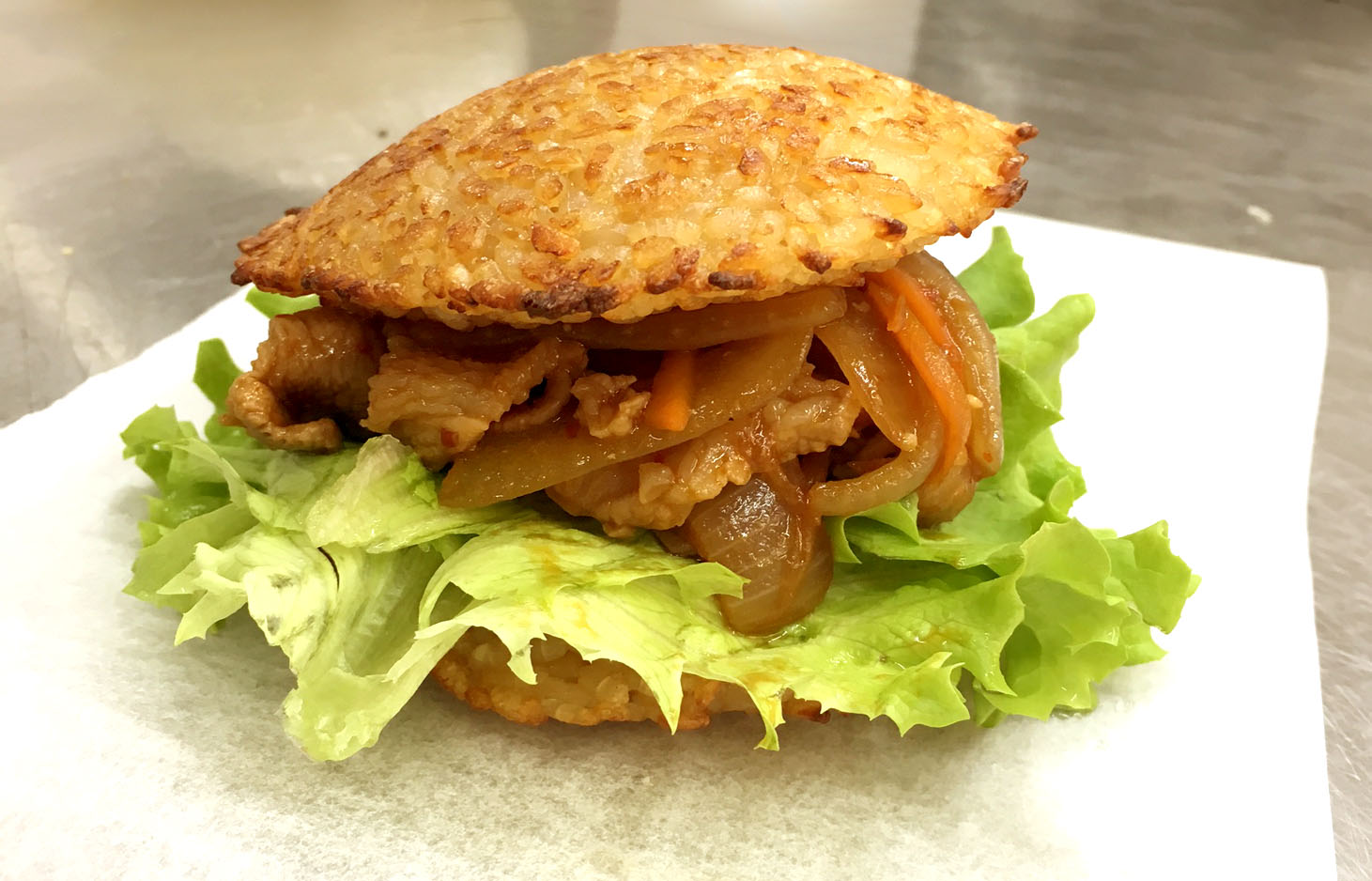惣菜・弁当販売の「Shiori亭」では、こんがり焼いた上越産のコシヒカリに、JAえちご上越オリジナルブランド豚「米っしいポーク」と新鮮野菜をサンドした「上越コシヒカリバーガー」が登場。