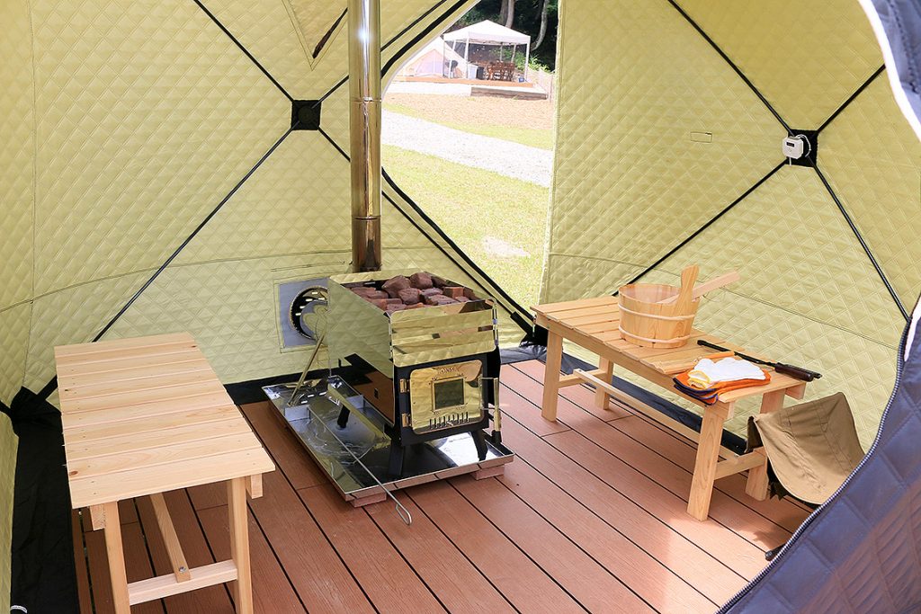 グランピングエリアには、話題のテントサウナも2台備わっています。