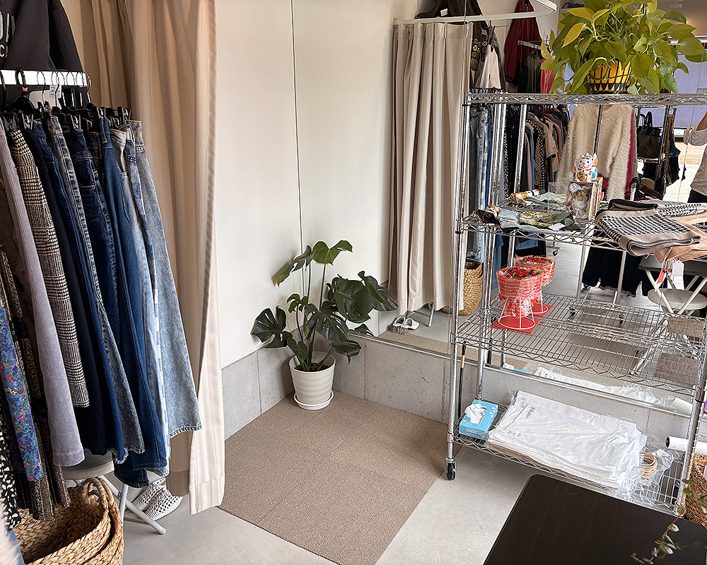 店奥には試着室もあり、松本さんと会話をしながら、ゆっくりと買い物が楽しめます。